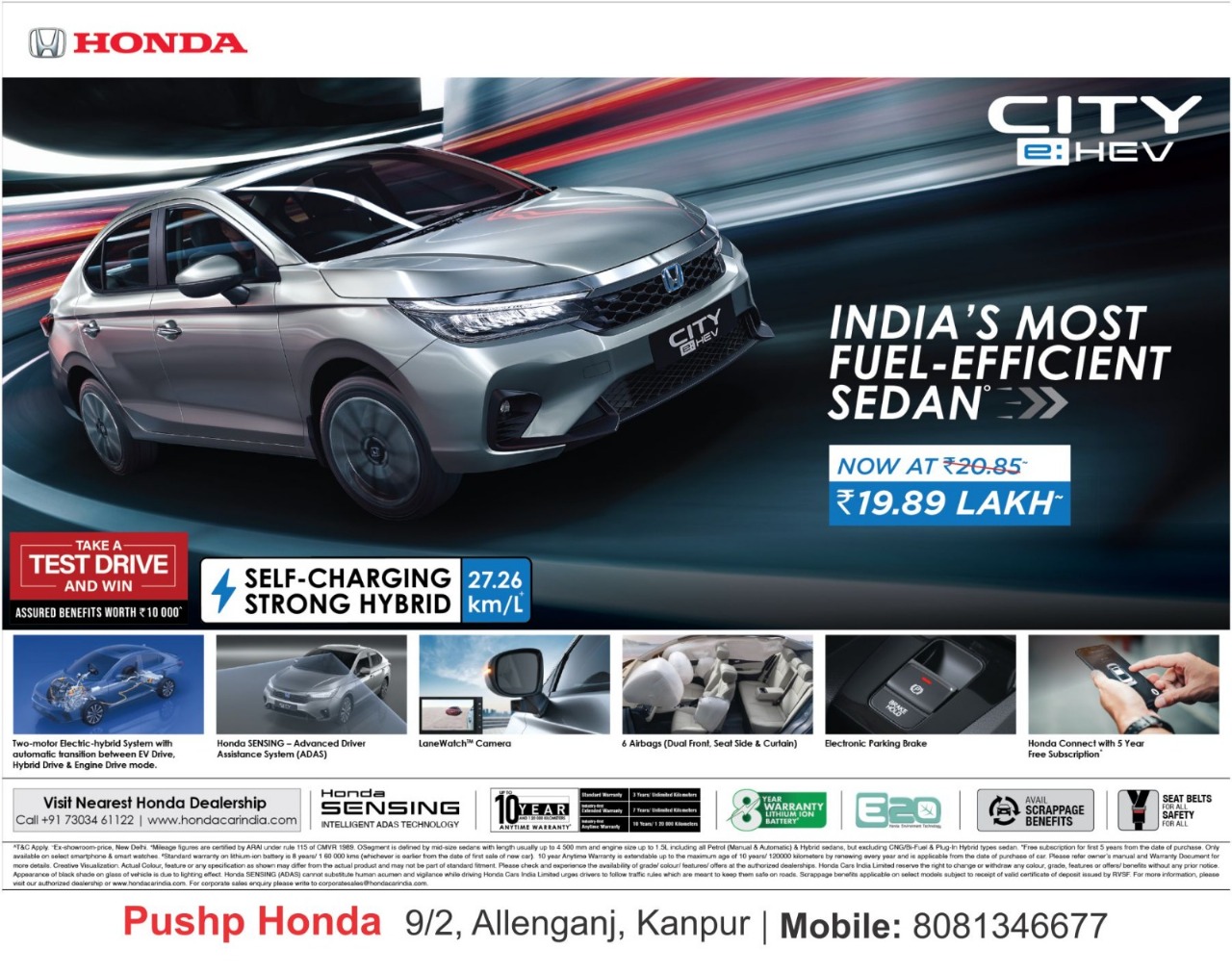 Smart Cars PVT. LTD, also known as Pushp Honda is strategically located at 9/2 Allenganj Kanpur in front of KD Palace. Pushp Honda, is a reputed Honda dealership and won many accolades: Best Service Advisor Award, Best Service Technician Award, Green Dealer Award, Best Paint Technician Award etc.